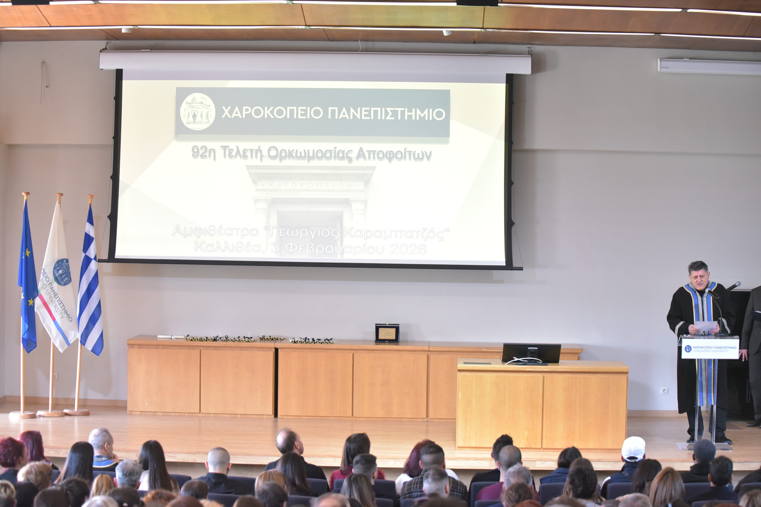 Με επίκεντρο τους απόφοιτους και τις στιγμές που αποτυπώθηκαν στον φακό πραγματοποιήθηκαν οι τελετές της 92ης Ορκωμοσίας του Χαροκοπείου Πανεπιστημίου. Χαμόγελα, συγκίνηση και βλέμματα περηφάνιας συνέθεσαν το σκηνικό μιας ημέρας που σηματοδοτεί το πέρας μιας ακαδημαϊκής διαδρομής και την έναρξη μιας νέας.