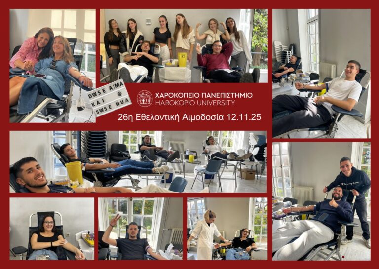 Με μεγάλη συμμετοχή ολοκληρώθηκε στις 12 Νοεμβρίου 2025 η 26η Εθελοντική Αιμοδοσία στο Χαροκόπειο Πανεπιστήμιο!