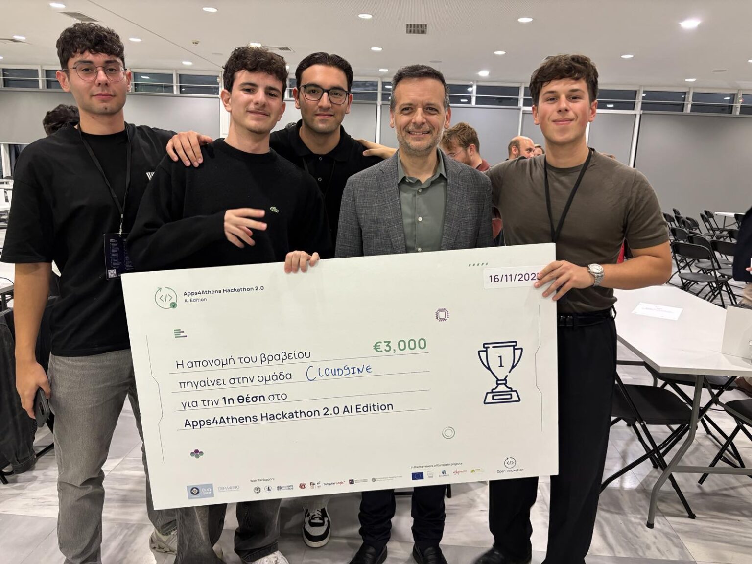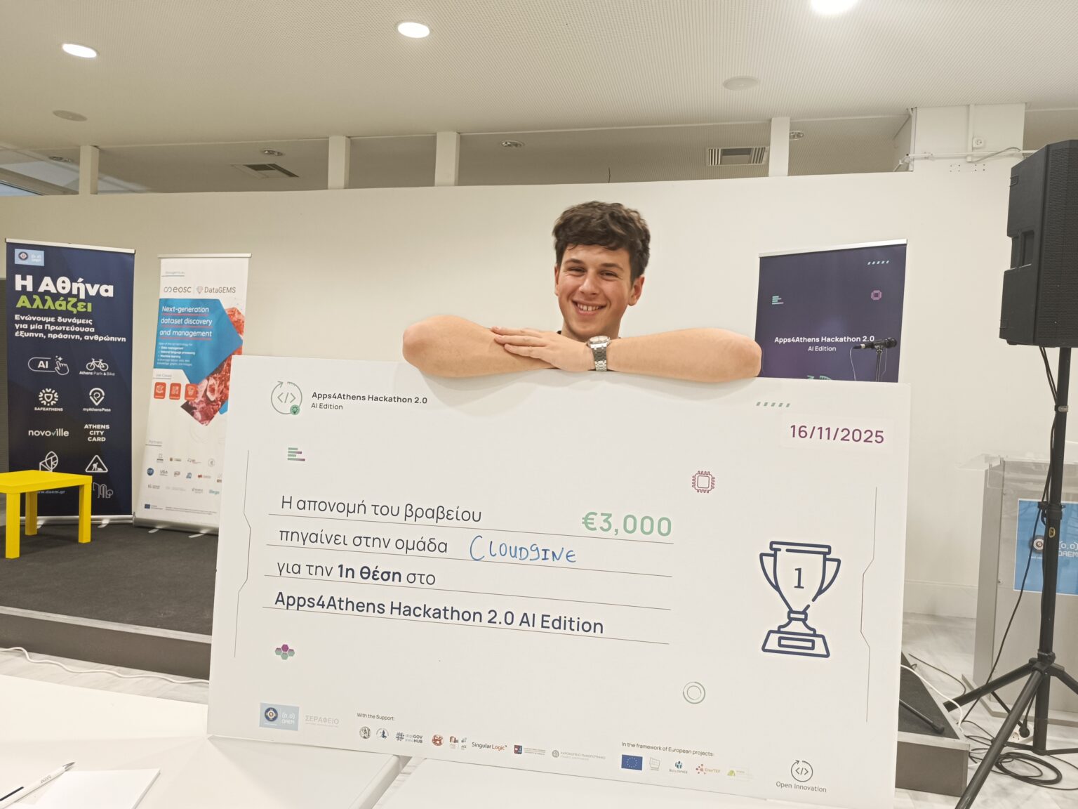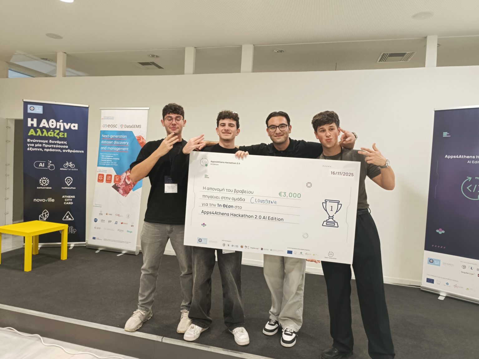 To 1ο βραβείο κατέκτησε ομάδα πρωτοετών φοιτητών του Τμήματος Πληροφορικής & Τηλεματικής του Χαροκοπείου Πανεπιστημίου στον Μαραθώνιο Καινοτομίας «Apps4Athens Hackathon 2.0: AI Edition», τον οποίο διοργάνωσε ο Δήμος Αθηναίων στις 15–16 Νοεμβρίου, με στόχο τον ψηφιακό μετασχηματισμό της πόλης μέσω της αξιοποίησης της Τεχνητής Νοημοσύνης!