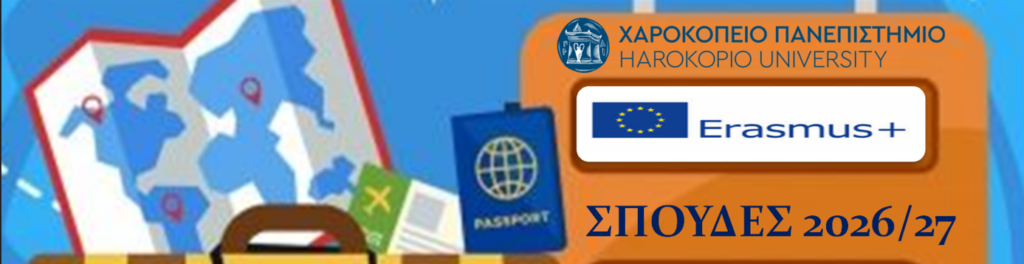 Καλούνται οι φοιτητές/τριες του Χαροκοπείου Πανεπιστημίου, κανονικά εγγεγραμμένοι/ες σε ένα από τα προγράμματα σπουδών των Τμημάτων του Ιδρύματος, που ενδιαφέρονται να συμμετάσχουν στη δράση κινητικότητας φοιτητών με σκοπό τις Σπουδές ERASMUS+ κατά το ΧΕΙΜΕΡΙΝΟ ή ΕΑΡΙΝΟ ΕΞΑΜΗΝΟ του προσεχούς ακαδημαϊκού έτους (2026/27), να υποβάλλουν τον πλήρη φάκελο υποψηφιότητας τους μέχρι την Τετάρτη 18/02/2026. Η χρηματοδότηση της κινητικότητας των φοιτητών/τριων θα γίνει από το νέο Πρόγραμμα ΚΑ-131-25.